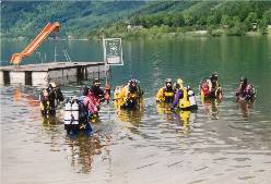 | Ebenso die Erfahrung im Planen und Durchführen diverser Veranstaltungen von welchen einige bereits Kultstatus besitzen. z.B.: Über das Tauchlager am Grundlsee gibt es die ersten schriftlichen Erwähnungen anno 1984, mündlichen Überlieferungen zufolge wird dieses Event jedoch weit älter datiert. Ebenso die Tauchlager am Attersee, Achensee, Lunzer-, Erlauf-, Gossausee.usw, Tauchlager in Kroatien. Z.B.: Rabac, Lovran,.... Eistauchen am Weissensee oder Erlaufsee,..... Veranstaltungen der unterschiedlichsten Art von Dekokammer- Besuch über Clubmeisterschaften, Tauchtriathlon, Paragliding, Raffting, bis zum Besuch des „Haus des Meeres“. | ![]() |